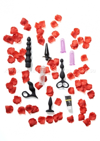 вибратор, анальная вибро-втулка, мини-пробочка, стимулятор ануса, стимулятор простаты, три стимулирующие насадки, анальная смазка, лепестки роз